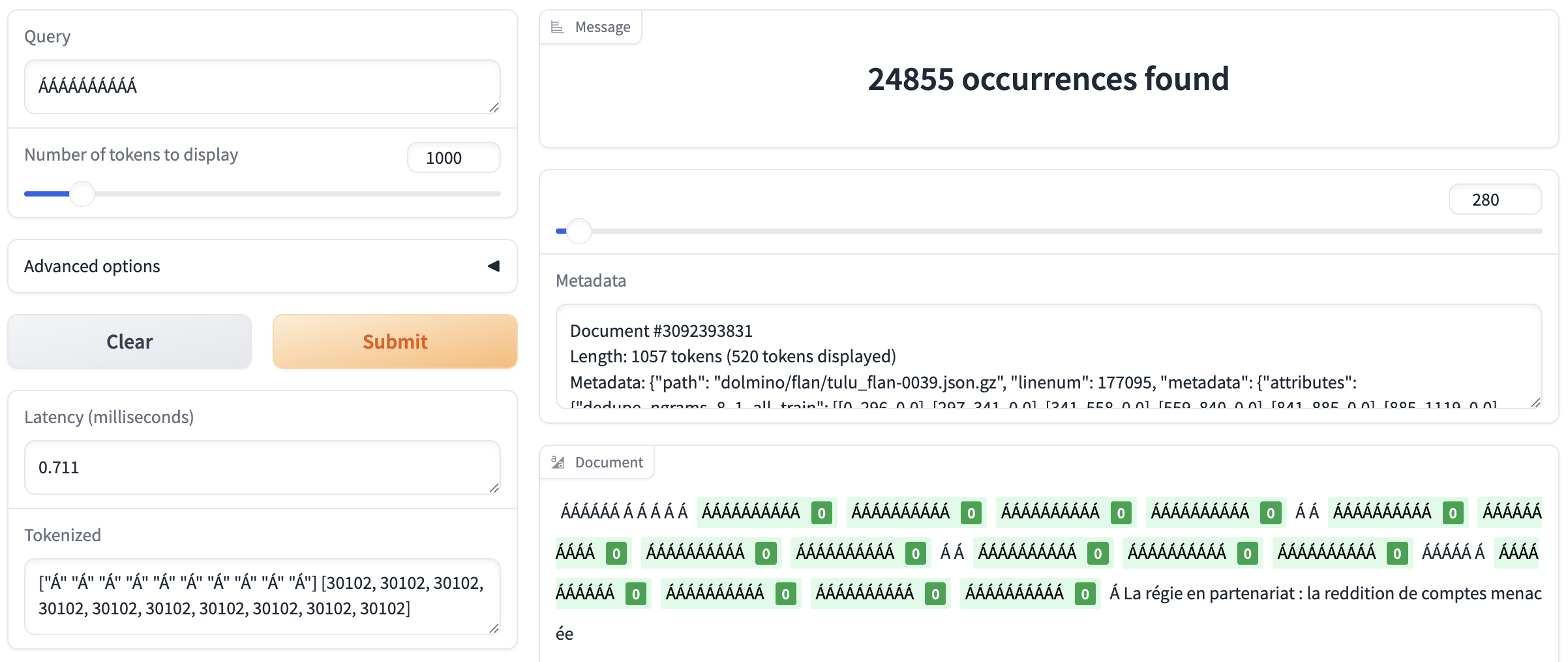 appears 25k times in this model’s full training data (mostly from the Flan set used in mid-training, for some mysterious reasons):